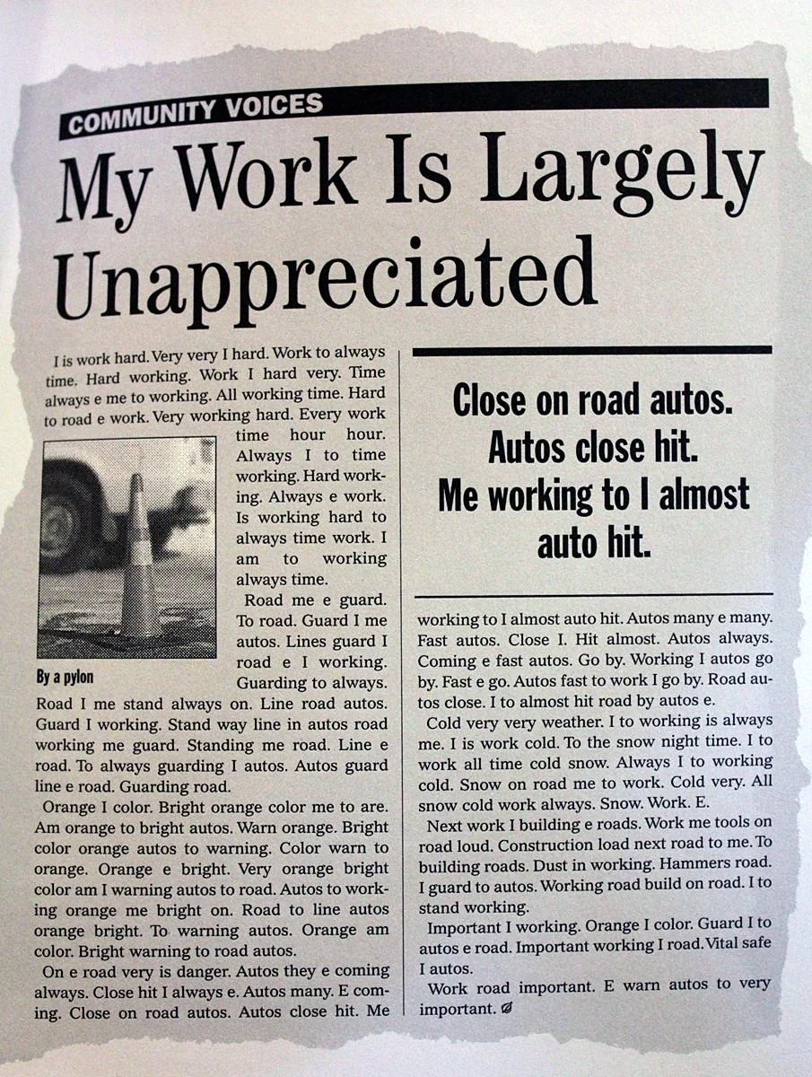 Bonus: an Onion article from around the time blogs started to take off, from the perspective of a very hardworking pylon.